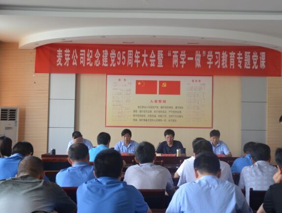 7月1日,麥芽公司召開紀念建黨95周年大會暨“兩學一做”學習教育專題黨課,全體共產黨員和入黨積極分子、中層管理人員參加了會議,公司黨委書記蔡守高作了“七一”重要講話和“兩學一做”學習教育專題黨課,黨委委員、財務總監朱恩桂主持會議。