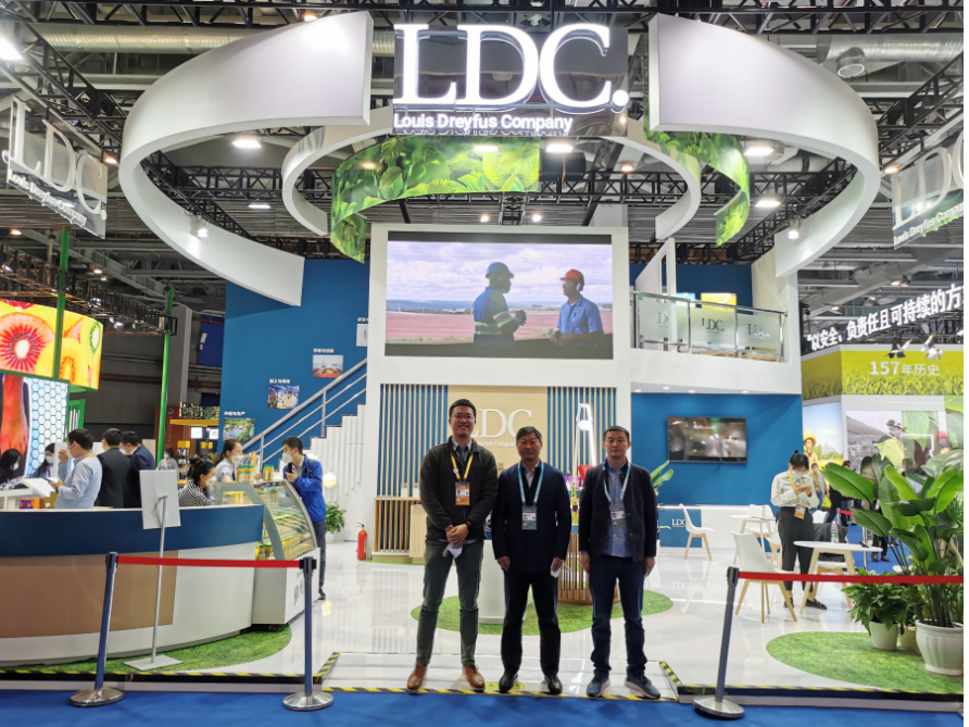 11月上旬公司參加2022年第五屆中國進口博覽會,參會期間與國際糧商路易達孚(LDC)、AMD、嘉吉(CARGILL)等進行了商務洽談,尤其是路易達孚(LDC)公司,以前未有接觸,通過進博會渠道雙方建立了良好貿易聯系。