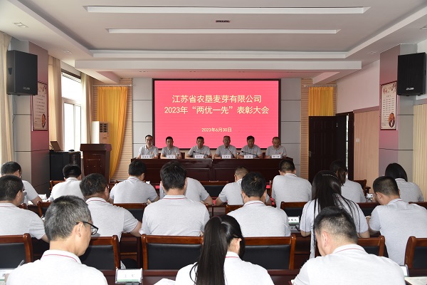 6月30日下午,蘇墾麥芽公司黨委召開“兩優一先”表彰大會,公司黨委書記、董事長郭世平講話,黨委副書記、總經理吳善河主持會議。公司領導班子成員、全體在職黨員參加會議。