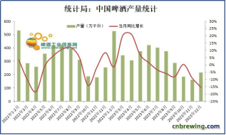 據統計局數據顯示:2023年12月,中國規模以上企業啤酒產量214.5萬千升,上月為159.7萬千升,同比大降15.3%,創下2022年5月以來最大單月降幅。
