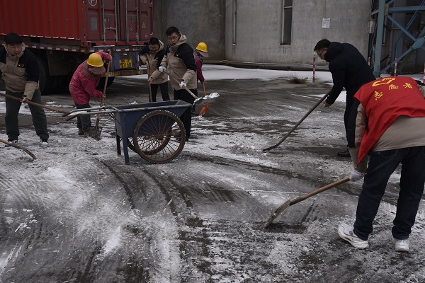 2月23日7時(shí)許,公司黨員干部、青年志愿者以雪為令,身先士卒對廠區(qū)主要干道、進(jìn)出料口、地磅等重點(diǎn)區(qū)域進(jìn)行全方位清掃,近50名員工不顧寒風(fēng)凜冽,他們有的掃雪,有的鏟冰,有的撒鹽,大家配合默契,來回穿梭的身影構(gòu)成一道道亮麗的風(fēng)景線。