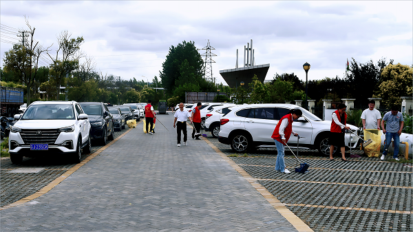 垃圾不落地,環境更美麗。活動中,志愿者們身穿紅馬甲,手持垃圾袋、夾子、掃帚和簸箕,分成多個小組撿拾停車場周邊的垃圾。志愿者們用夾子夾起角落的煙頭、撿起地上“翻滾”的垃圾袋、撿拾隱藏在樹枝下的礦泉水瓶、用樹枝挑起深陷泥土的白色垃圾,不到半小時,垃圾袋中已經“戰果累累”。炎炎夏日,志愿者們滿頭大汗,但大家不怕臟和累,不放過任何一個死角,認真撿拾垃圾,為創造干凈、整潔、舒適的環境貢獻自己的一份力。