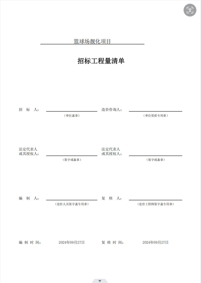 3、請盡快組織勘查現場,勘查現場后,在10月10日24點前工程量報價清單、授權委托書、營業執照、資質文件、安全生產許可證復印件等簽字蓋章掃描發送至郵箱:[email protected]。請將郵件主題名稱標注為:籃球場靚化項目