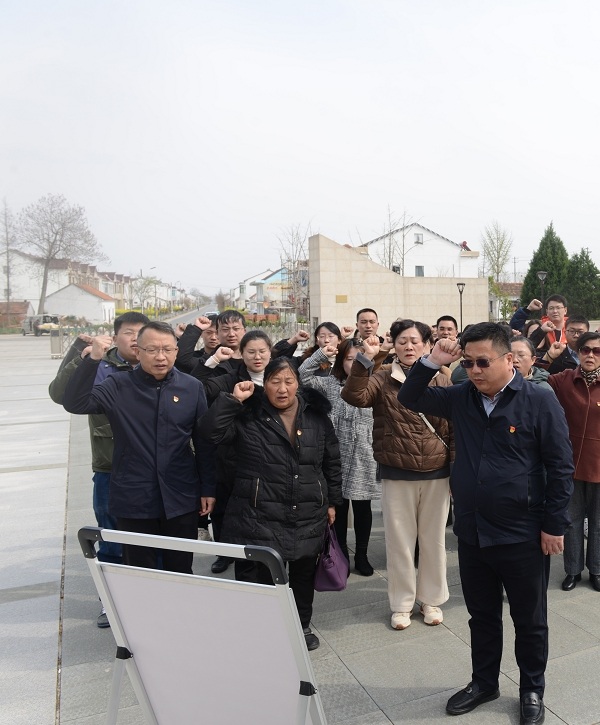 踏入阜寧縣蘆蒲烈士陵園,一片莊重肅穆的氛圍。在新四軍鹽阜區抗日陣亡將士紀念塔前,發鴻社區李書記等人神情莊重地敬獻花圈,全體黨員整齊列隊,向革命先烈默哀致敬。在義務講解員的深情解說下,黨員們深入了解了抗日戰爭時期鹽阜軍民浴血奮戰、保家衛國的悲壯歷史。隨后,李書記帶領大家重溫入黨誓詞,鏗鏘有力的誓言在陵園上空久久回響,與黨員們胸前閃耀的黨徽相互映襯,進一步增強了每一位黨員的黨性意識,讓初心與使命在心底牢牢扎根。