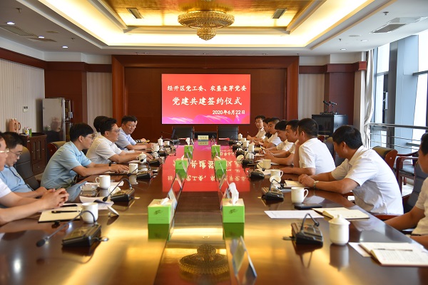 蘇墾麥芽公司黨委與射陽經(jīng)開區(qū)黨工委舉行黨建共駐共建簽約儀式