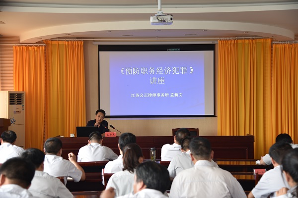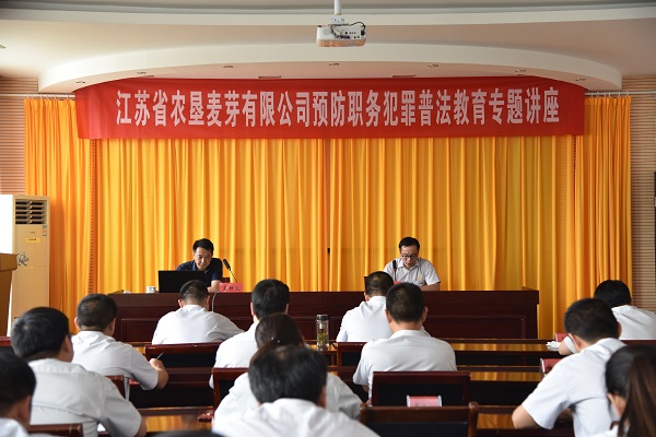 為促使全體干部職工和重點部門工作人員提高警惕,自省自律,增強拒腐防變的能力,根據集團公司相關工作要求,8月14日下午,蘇墾麥芽公司法務部邀請公司法律顧問孟新文就預防職務經濟犯罪作專題講座。會議由財務總監鄒德來主持,公司經營層成員、中層管理人員以及重點部門工作人員參加會議。