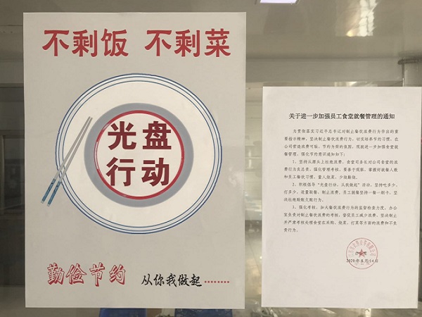 如今,公司“光盤行動”已初見成效,“少盛點兒”“吃不完浪費”“吃多少打多少”的觀念已逐步根植于職工的心中,有效地杜絕了餐飲浪費的行為,“餐飲浪費可恥 節約糧食光榮”成為了公司新風尚。