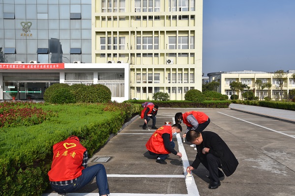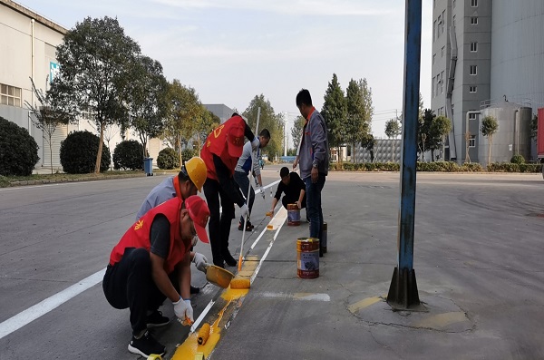 公司全體黨員根據各黨支部劃分的責任區域,分工合作,利用周末的休息時間對公司全廠區范圍內的道路和生產、生活區域進行劃線刷漆。黨員們有的清理待刷漆路面,有的貼膠紙固定刷漆輪廓,有的調配油漆比例,有的拿起刷子認真刷漆,有的拎著油漆桶一路為刷漆的同事服務……大家分工合作,團結一心,經過一整天的辛勤努力,全廠區的道路劃線刷漆活動圓滿完成。